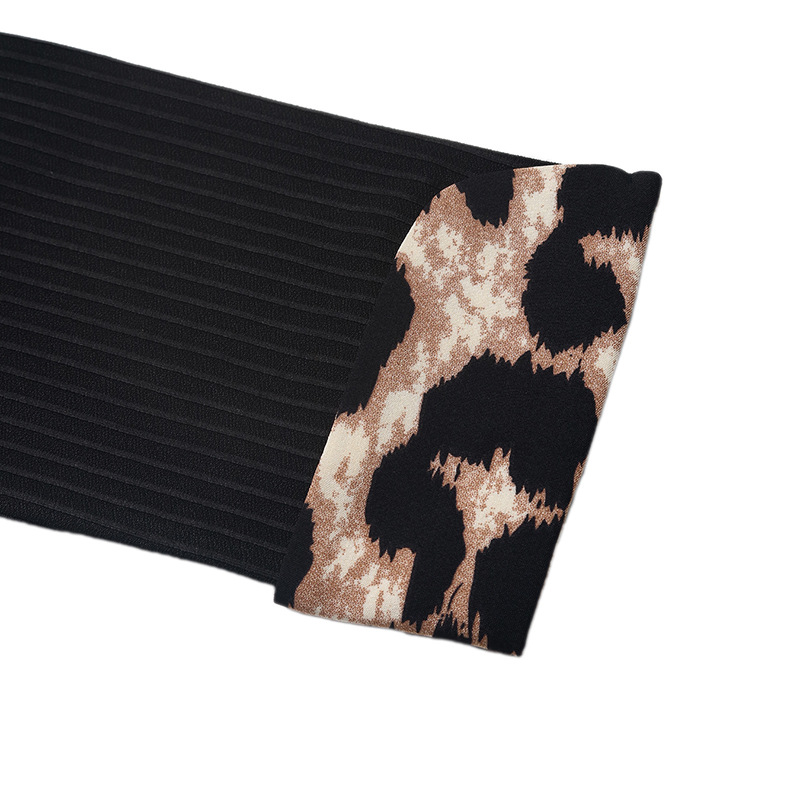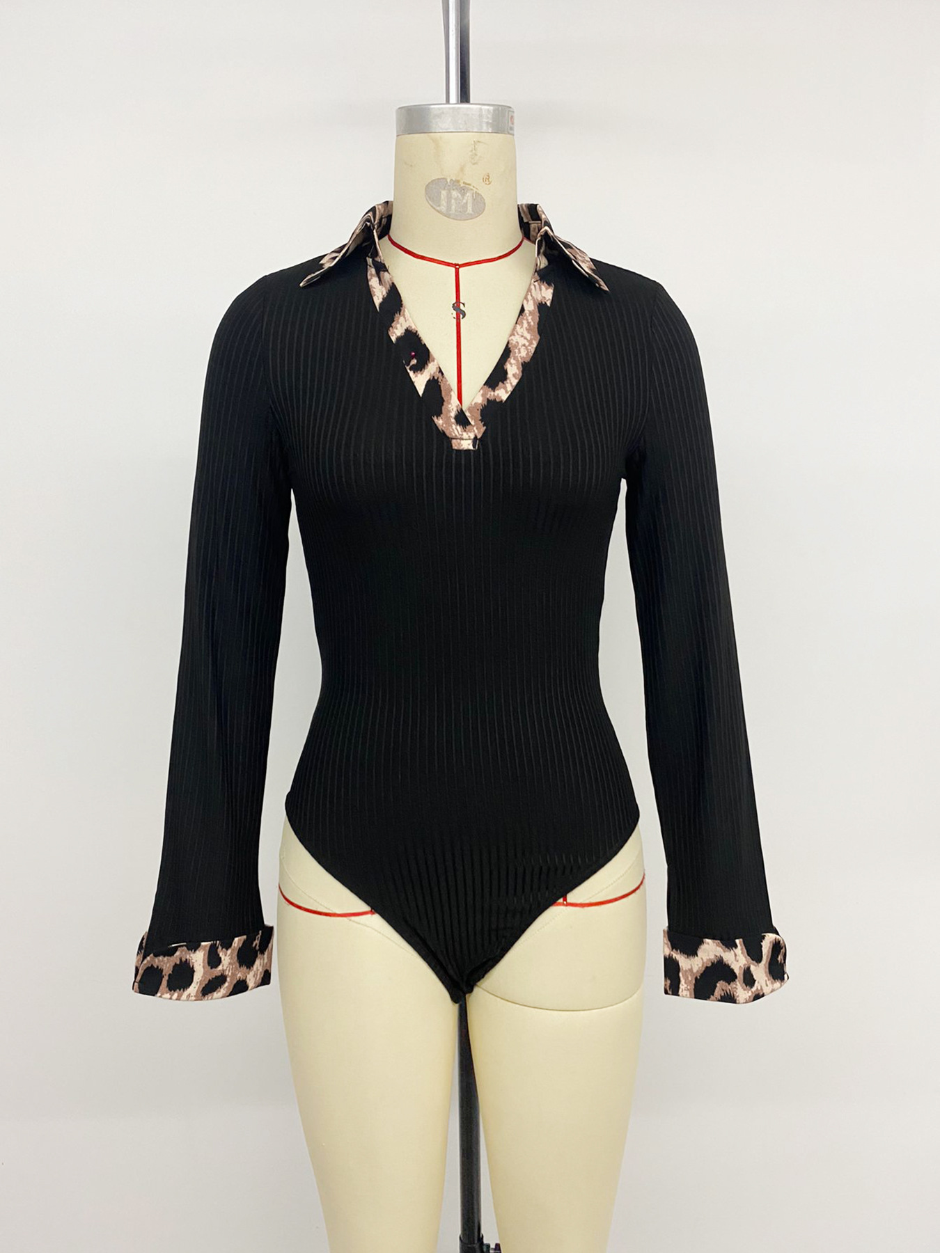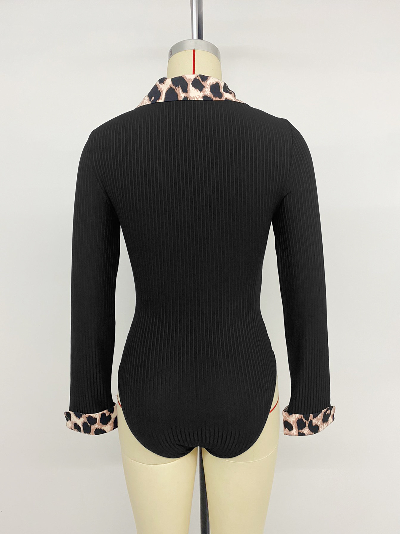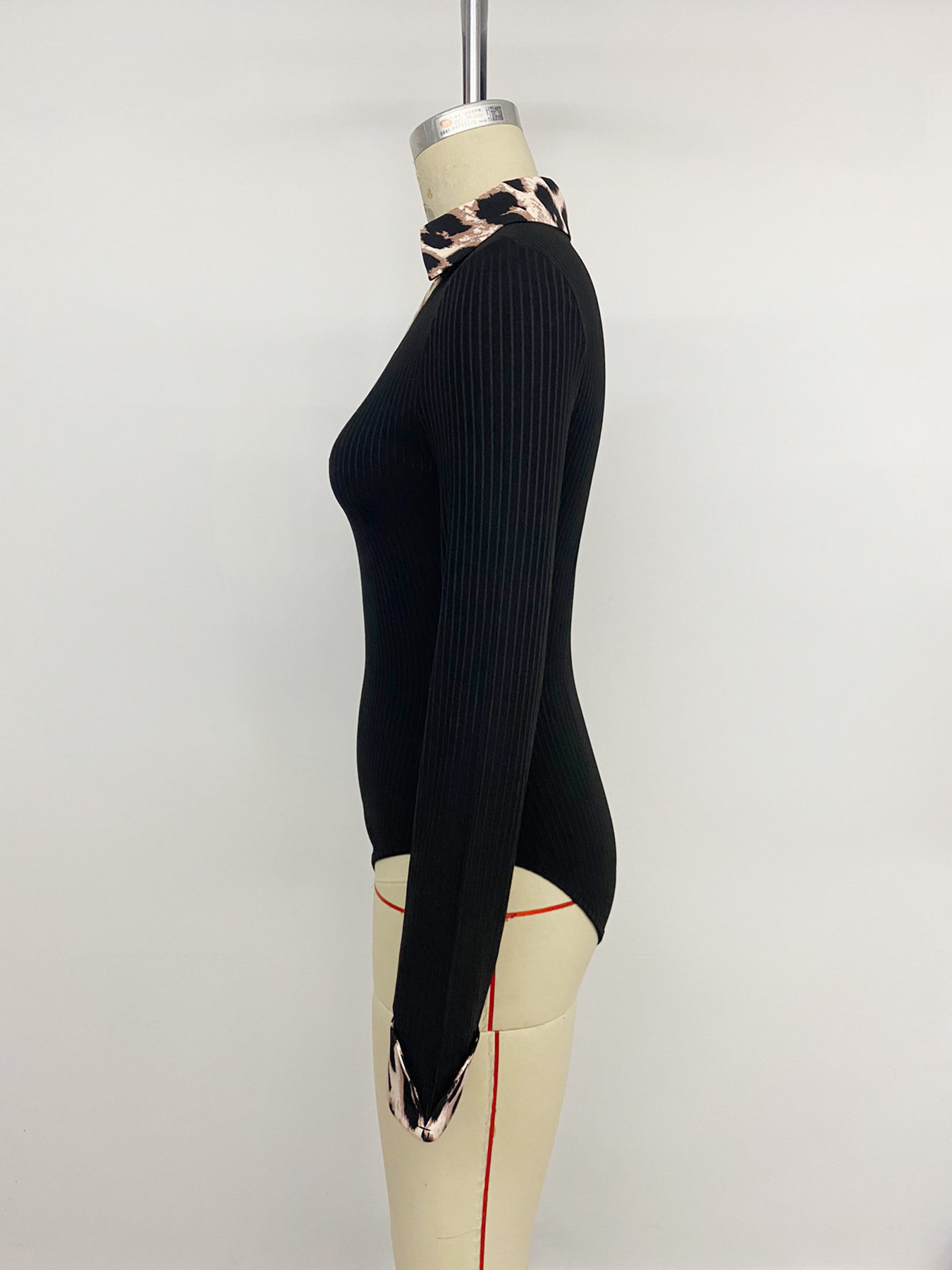 Leopard Print Mock Neck Bodysuit - Long Sleeve Patchwork Knit