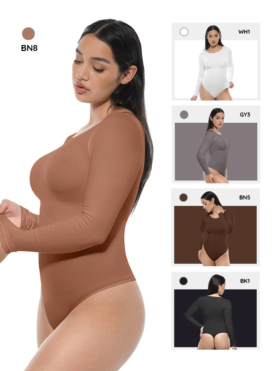 Engineered for seamless comfort and confidence, this long-sleeve bodysuit combines breathable, stretchy fabric that moves with you throughout the day. The targeted compression in the midsection and arms delivers subtle shaping without restriction, while the convenient hook-and-eye crotch design offers practical ease. Versatile enough to layer under dresses, tops, or wear with jeans, it's the foundation piece that works as hard as you do. Made from a durable nylon-spandex blend (92% nylon, 8% spandex) and packaged in eco-conscious materials, this bodysuit supports both your comfort and your values.