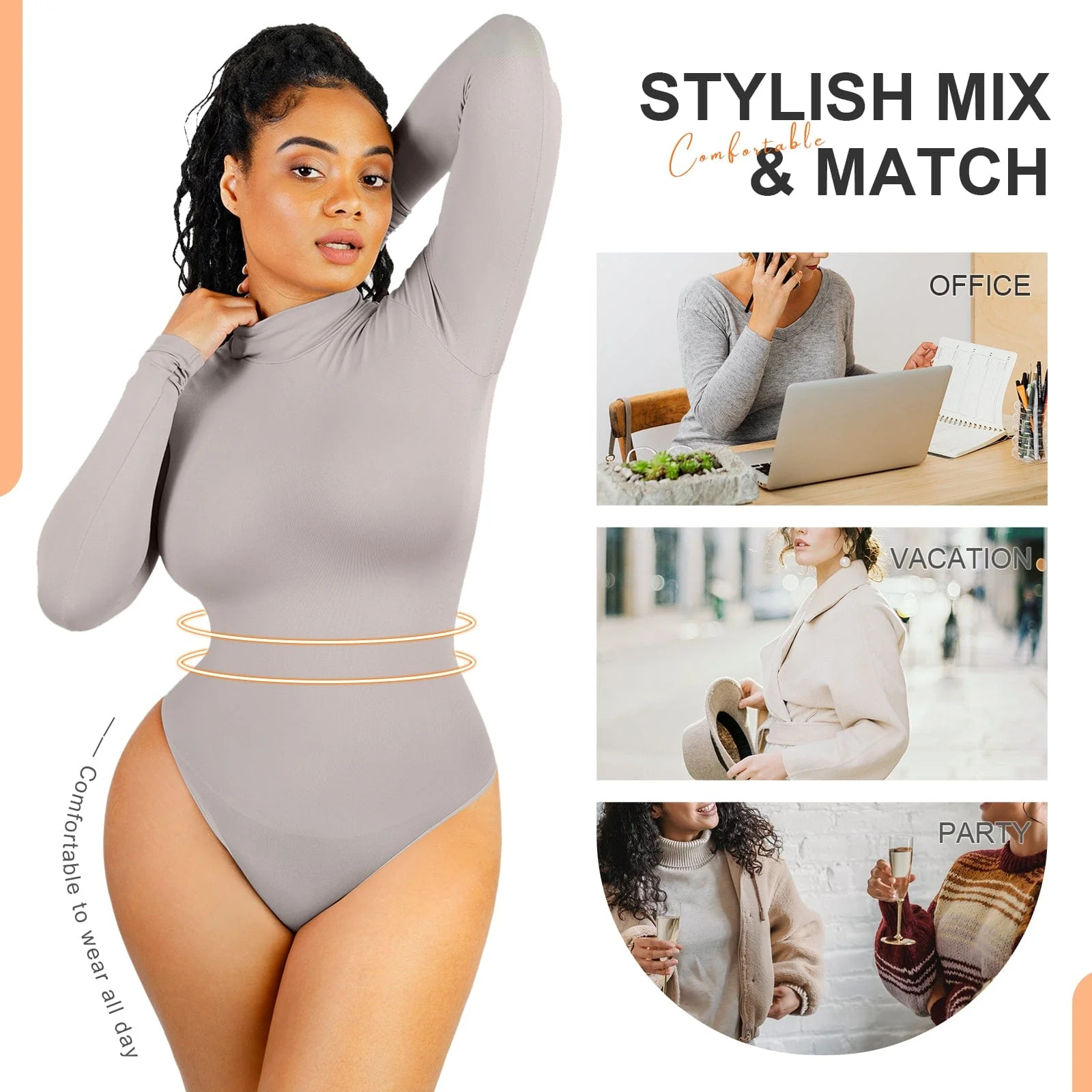 6. Elastic compression fabric with 360° waist control.