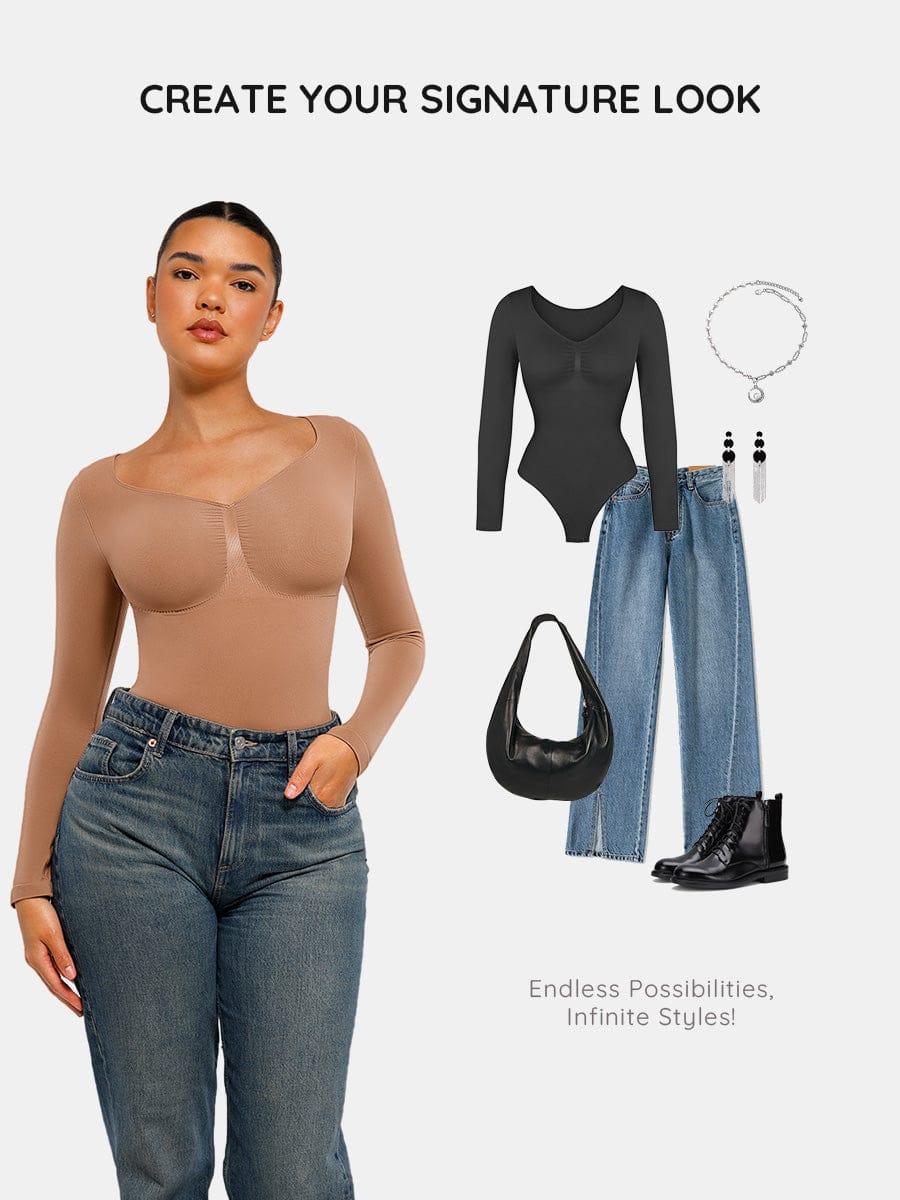 Long Sleeve Seamless Bodysuit with Tummy Control